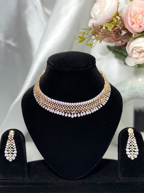 American Diamond Dusk Necklace Set with Teardrop Stone